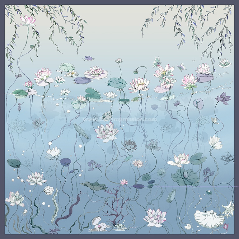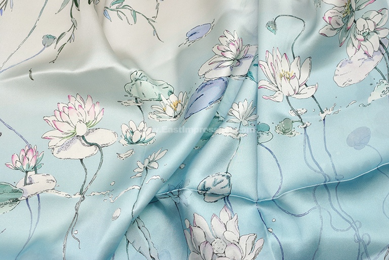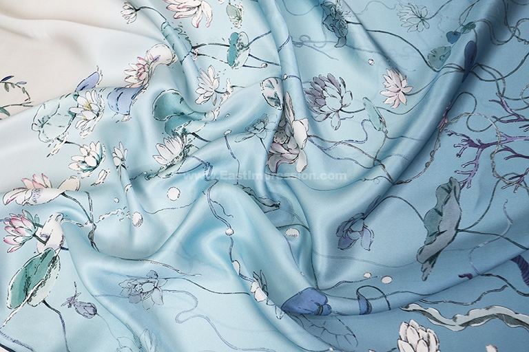 丝巾面料为14姆米真丝素绉缎,散发出自然柔和的丝绸光泽,表面平整光洁,触感细腻丝滑。