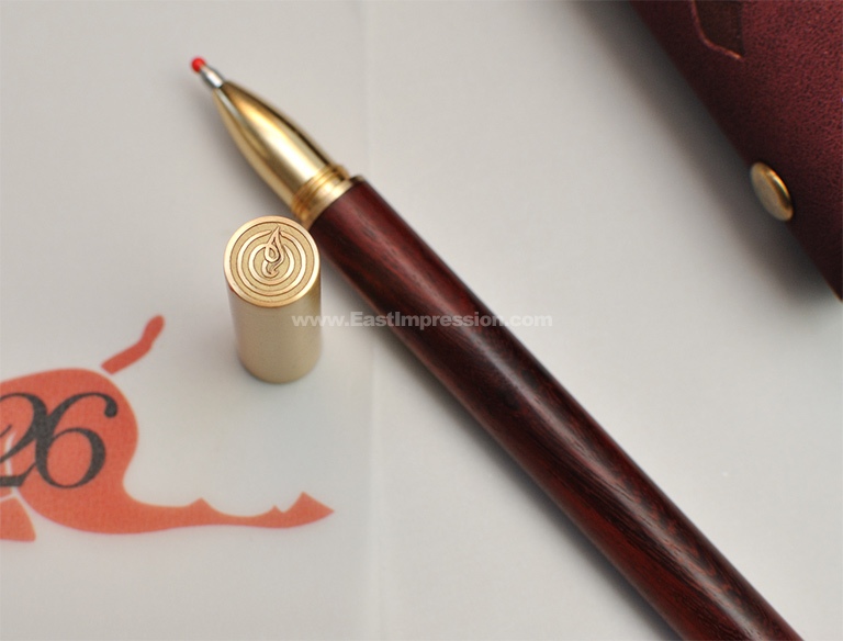 笔杆为科檀木,色泽纹理天然质朴。笔头、笔帽均为黄铜,笔芯为瑞士品牌ADMOK 0.5B(可替换),书写流畅耐用。