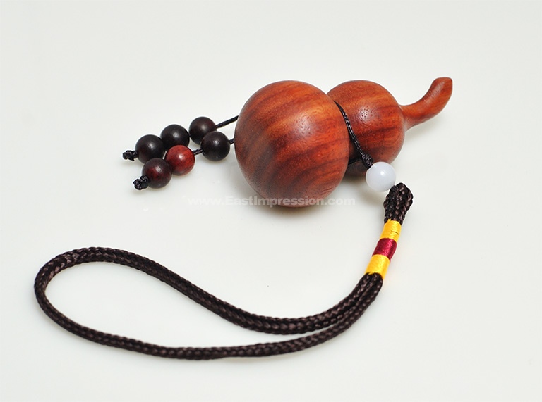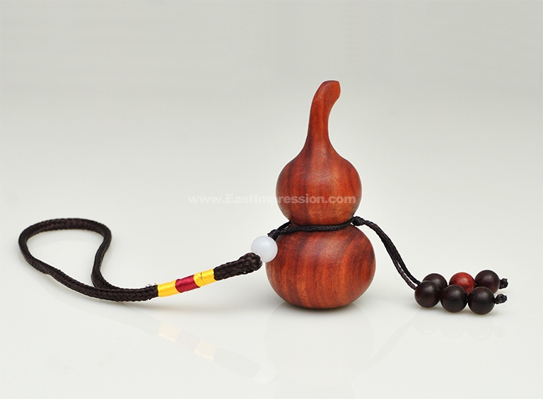 葫芦的枝“蔓”与万谐音,每个成熟的葫芦里葫芦籽众多,汉族就联想到“子孙万代,繁茂吉祥”;葫芦谐音“护禄”“福禄”,加之其本身形态各异,造型优美,无须人工雕琢就会给人以喜气祥和的美感,古人认为它可以驱灾辟邪,祈求幸福,使子孙人丁兴旺。亚腰葫芦在外型上看是由两个球体组成,象征着和谐美满,寓意着夫妻互敬互爱。如果夫妻缘薄,可以摆放一只在床头,加强夫妻情分,增加夫妻感情。葫芦还用作除病之用,只须挂在病者的床尾或摆放在病者的睡侧。就可以吸取病人身上的病气,使其快速的好起来。如果是健康人,则可以吸取人身上的晦气,提升运势。葫芦挂在大门外,则有保屋内人平安的作用。因此,千百年来,葫芦作为一种吉祥物和观赏品,一直受到人们的喜爱和珍藏。