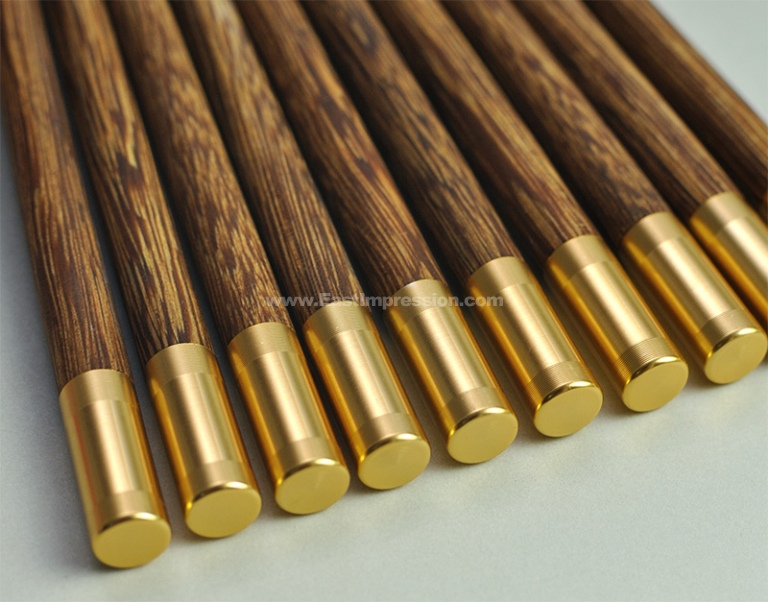筷身取材于南美A+级鸡翅木。鸡翅木以显著、独特的纹理著称,其木材心材的弦切面上有鸡翅(V字形)花纹,宛若鸡翅羽毛般璀璨,历来深受文人雅士和广大消费者的喜爱。筷帽以铝镁合金表面电镀,起到防氧化的作用。