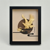 制作一幅立体金箔画需要完成许多道工序,首先要经过严格选材、取材、创意构思、完成素描稿,确定整体效果,再经过立体思维方式,将画面分割成众多的小单元,并运用传统的剪、刻、捏、胶等不同的手法,再经过无数次人手工序,纯手工严谨制作而成。