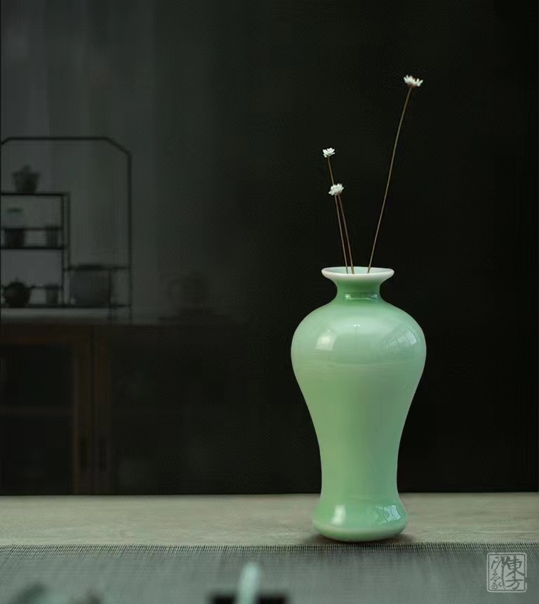 龙泉青瓷(弟窑•梅子青釉)梅瓶小花插