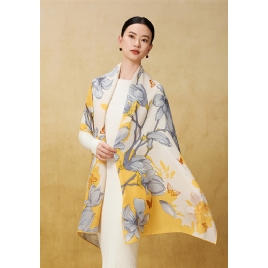 绵羊毛桑蚕丝混纺秋冬款围巾披肩:玉兰福蝶